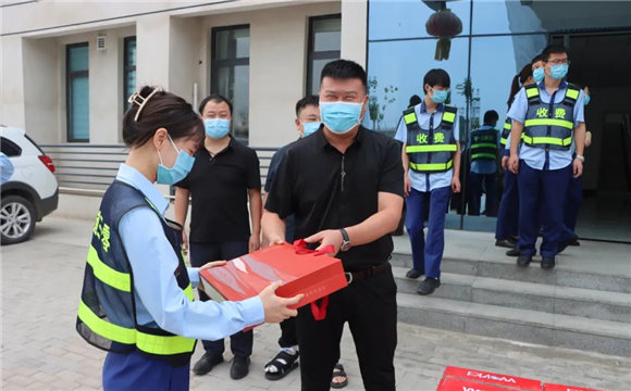在三門峽西收費(fèi)站,周鵬一行親切慰問了收費(fèi)站及路產(chǎn)二中隊(duì)全體干部職工,為他們送上了節(jié)日祝福,詳細(xì)詢問了近期的生活、工作情況,對大家面對嚴(yán)峻的疫情形勢,履職盡責(zé),發(fā)揚(yáng)連續(xù)奮戰(zhàn)的奉獻(xiàn)精神給予了充分肯定。在了解了職工餐廳供餐情況后,周鵬表示,中秋佳節(jié)是萬家團(tuán)圓之日,堅(jiān)守一線的干部職工舍小家、為大家,為保障新國道310的安全暢通堅(jiān)守工作崗位,站區(qū)要全力做好后勤服務(wù)工作,讓大家度過一個平安、祥和、溫馨的中秋佳節(jié)。